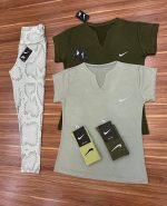 ست لگ طرح دار و تیشرت یقه دلبری و نیمتنه ورزشی کد 3660